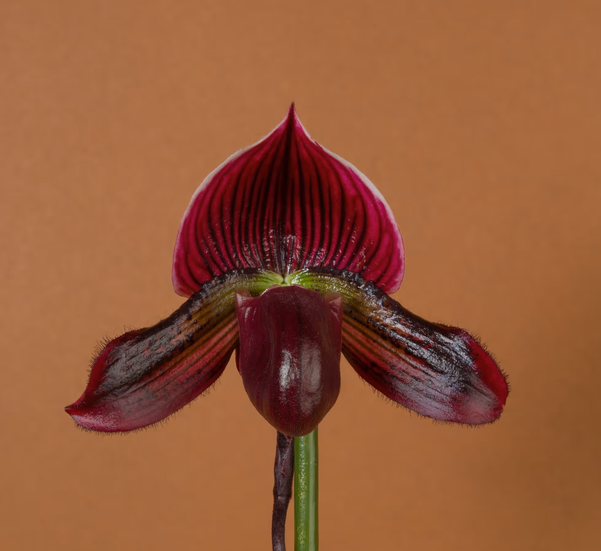 De Paphiopedilum groeit en bloeit het beste op een lichte plek, maar houdt niet van direct zonlicht. Zie je dat de plant een doffere kleur krijgt? Dan heeft het waarschijnlijk te veel licht.
